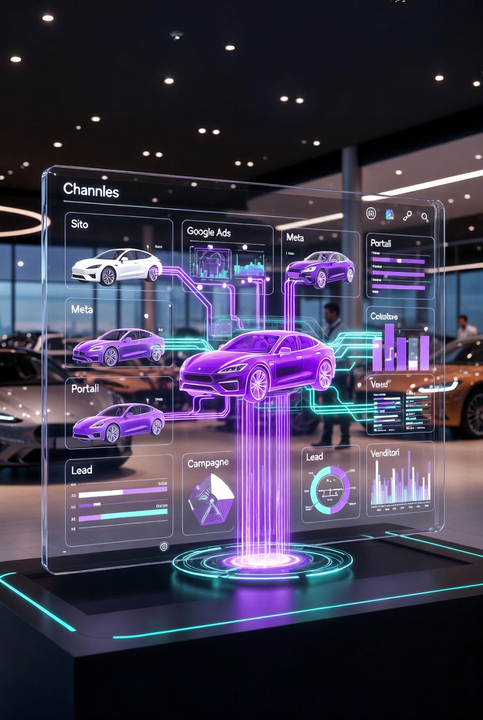 Nel settore automotive, il successo dipende dalla capacità di orchestrare in modo efficace tutti i canali di contatto con il cliente: sito web, campagne Google Ads, piattaforme Meta, portali di settore, iniziative promozionali, generazione di lead, rete vendita e dati analitici.